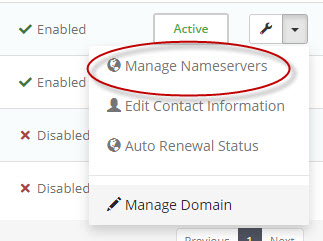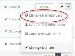 3.Click on the 3 dotsĀ to the right of the domain you wish to update and click on manage nameservers.